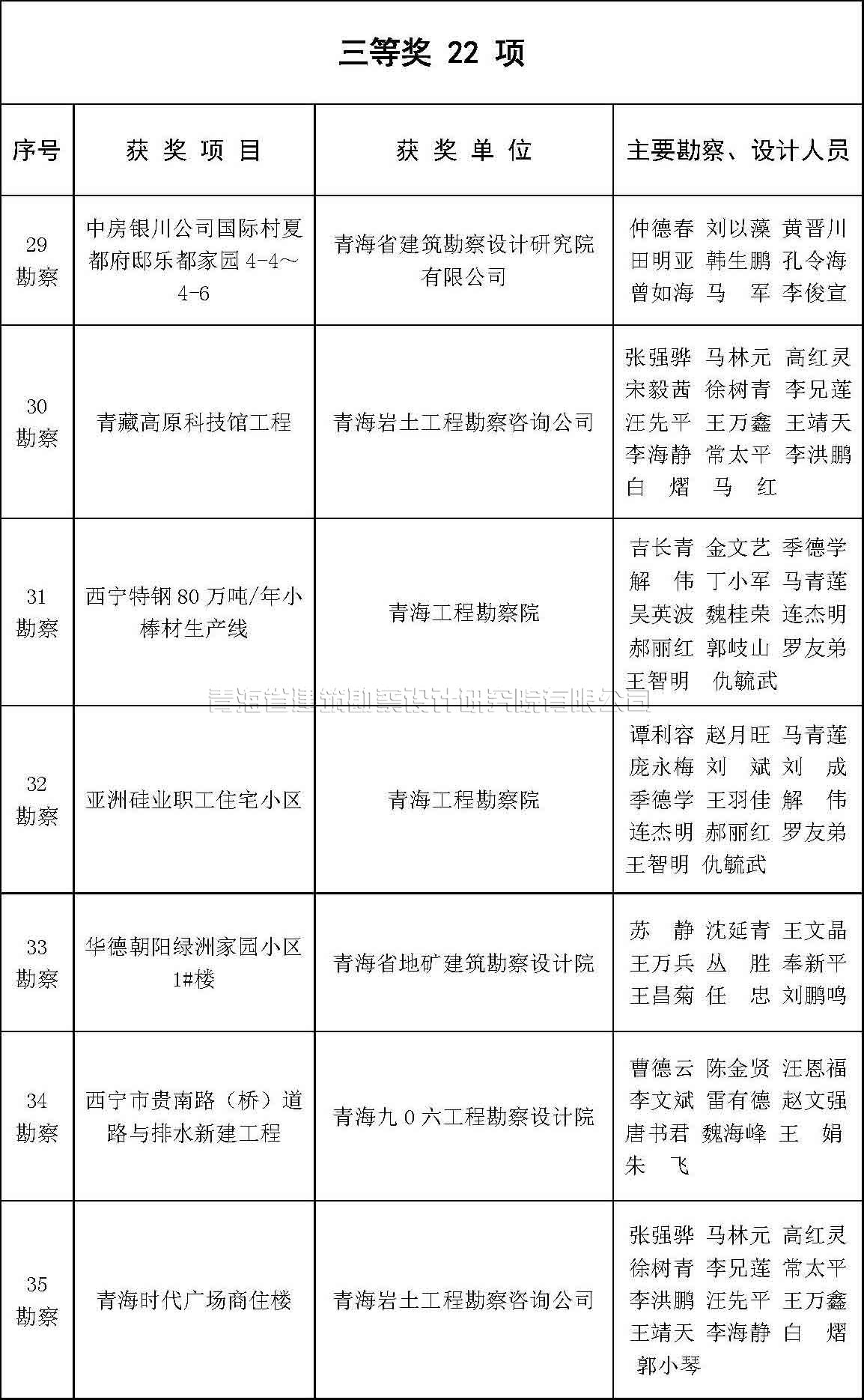 根據(jù)《青海省優(yōu)秀工程勘察設(shè)計(jì)獎(jiǎng)評(píng)選辦法》(青建設(shè)[2011]534號(hào),以下簡(jiǎn)稱《評(píng)選辦法》)的規(guī)定,及中國(guó)勘察設(shè)計(jì)協(xié)會(huì)《關(guān)于評(píng)選2015年度全國(guó)優(yōu)秀工程勘察設(shè)計(jì)行業(yè)獎(jiǎng)的通知》,我協(xié)會(huì)組織對(duì)2015年度青海省優(yōu)秀工程勘察設(shè)計(jì)獎(jiǎng)進(jìn)行了評(píng)選。評(píng)選結(jié)果于7月15日在協(xié)會(huì)QQ群中進(jìn)行了公示,現(xiàn)予以公布。