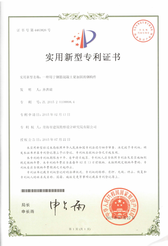 注:以下為獲獎(jiǎng)的部分《實(shí)用新型專(zhuān)利證書(shū)》
