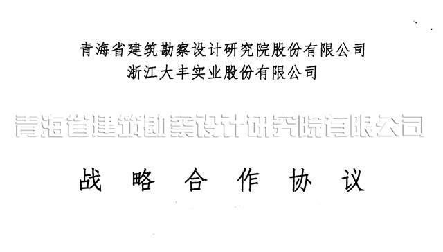 11月18日,受青海省院董事長、總經(jīng)理王力明的委托,我院授權(quán)代表、黨委書記沈波立與浙江大豐實(shí)業(yè)股份有限公司授權(quán)代表、經(jīng)理孫濤簽署了戰(zhàn)略合作協(xié)議。